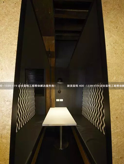具有懷舊風的紅磚墻面、裸露的吊頂、舊式的鋼窗、未經打磨的粗糙木柱、整面墻的懷舊畫報裝飾,擁有兩層樓面的懷特代理行粗獷的環境流露出濃厚的人文情感。配置鋼構的桌椅、精致的家具、以及特色休閑家具,配合獨特的設計風格共同映射出別具一格的個性特質。